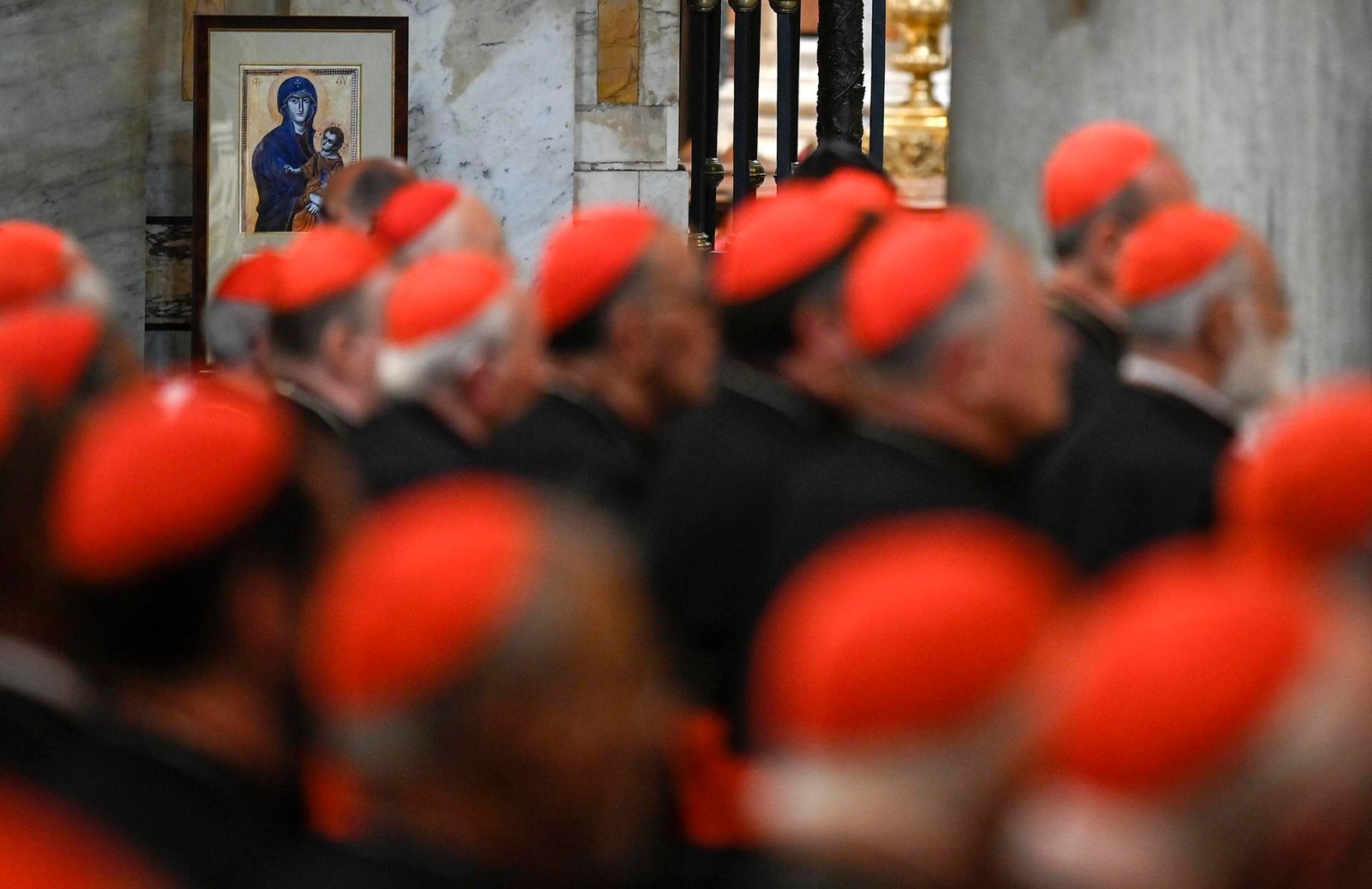Rome (Italy), 27/04/2025.- Cardinals participate in the prayer of Vespers and pay homage to the tomb of Pope Francis in the Papal Basilica of Saint Mary Major (Basilica di Santa Maria Maggiore), in Rome, Italy, 27 April 2025, a day after the pontiff's funeral. Pope Francis passed away on Easter Monday, 21 April 2025, at the age of 88. (Papa, Italia, Roma) EFE/EPA/RICCARDO ANTIMIANI