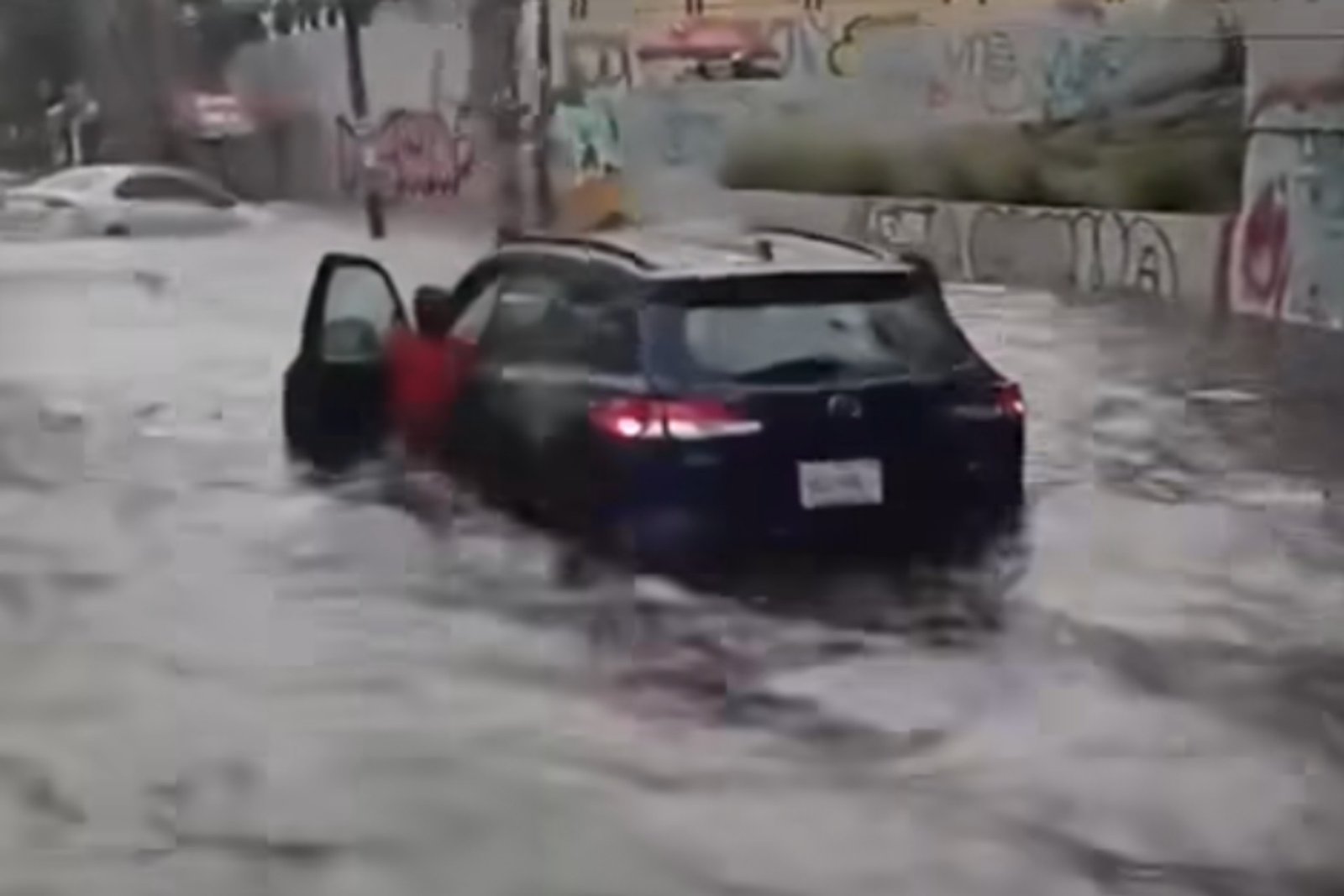 En las imágenes, se puede ver a los automóviles casi bajo el agua, intentando cruzar o evitando ser arrastrados por la corriente.